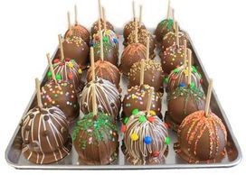 Granny Smith Apples are Dipped in our Premium Caramel, then Dunked in our Belgian Chocolate & Decorated to Perfection